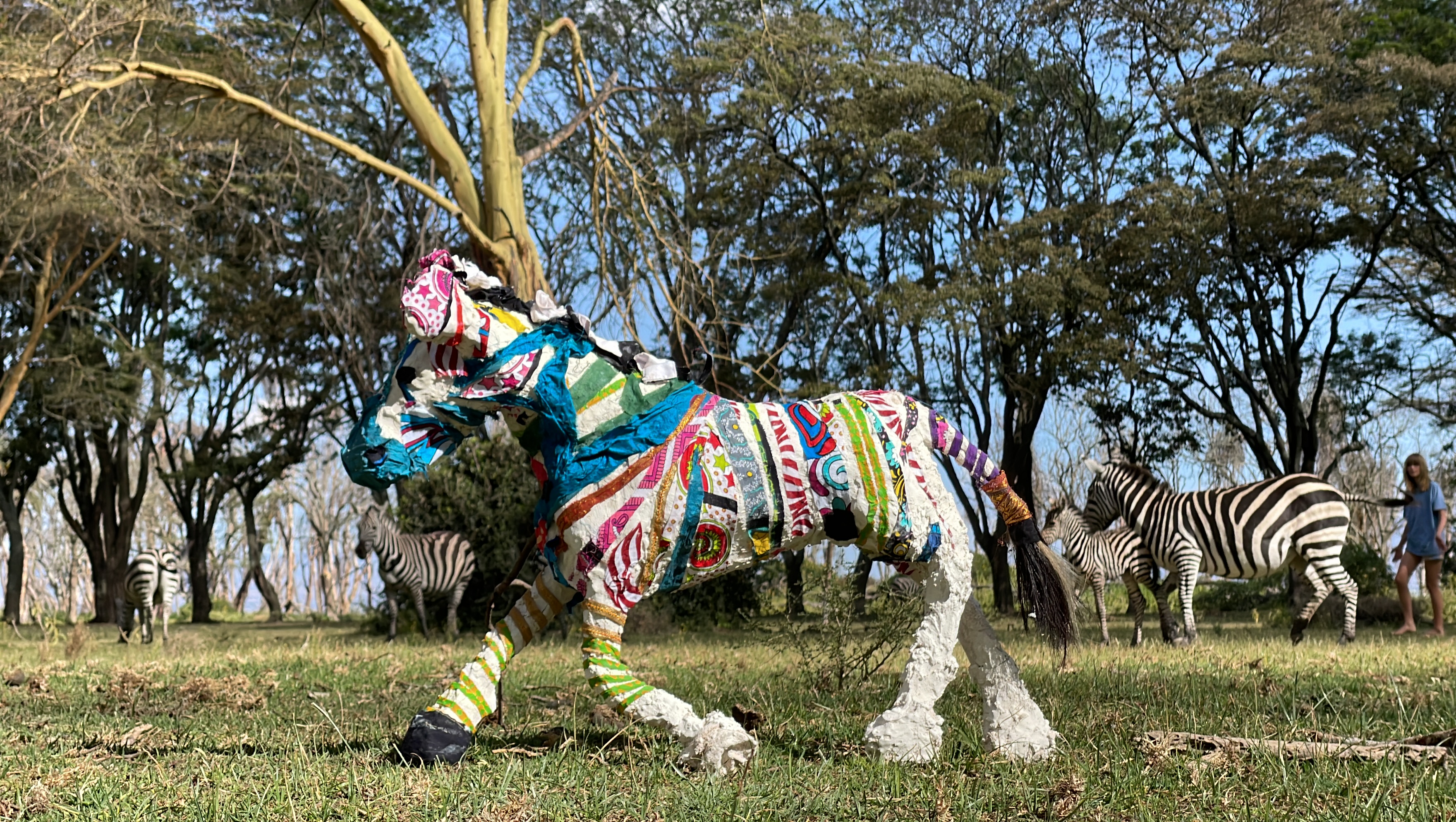 Her sculpture of a Grevy’s zebra in amongst a herd of the more common Burchell’s zebra tries to highlight how different these rare, very special, desert-adapted zebra are to common zebra. The sculpture is for sale in Kenya to the highest bidder and this plus all donations will go to the Grevy’s Zebra Trust to fund their feeding programme!