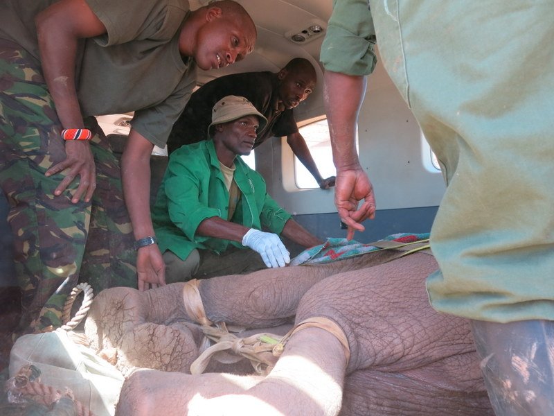 © David Daballen – Sokotei sedated in a DSWT plane with Chris Leadismo from STE